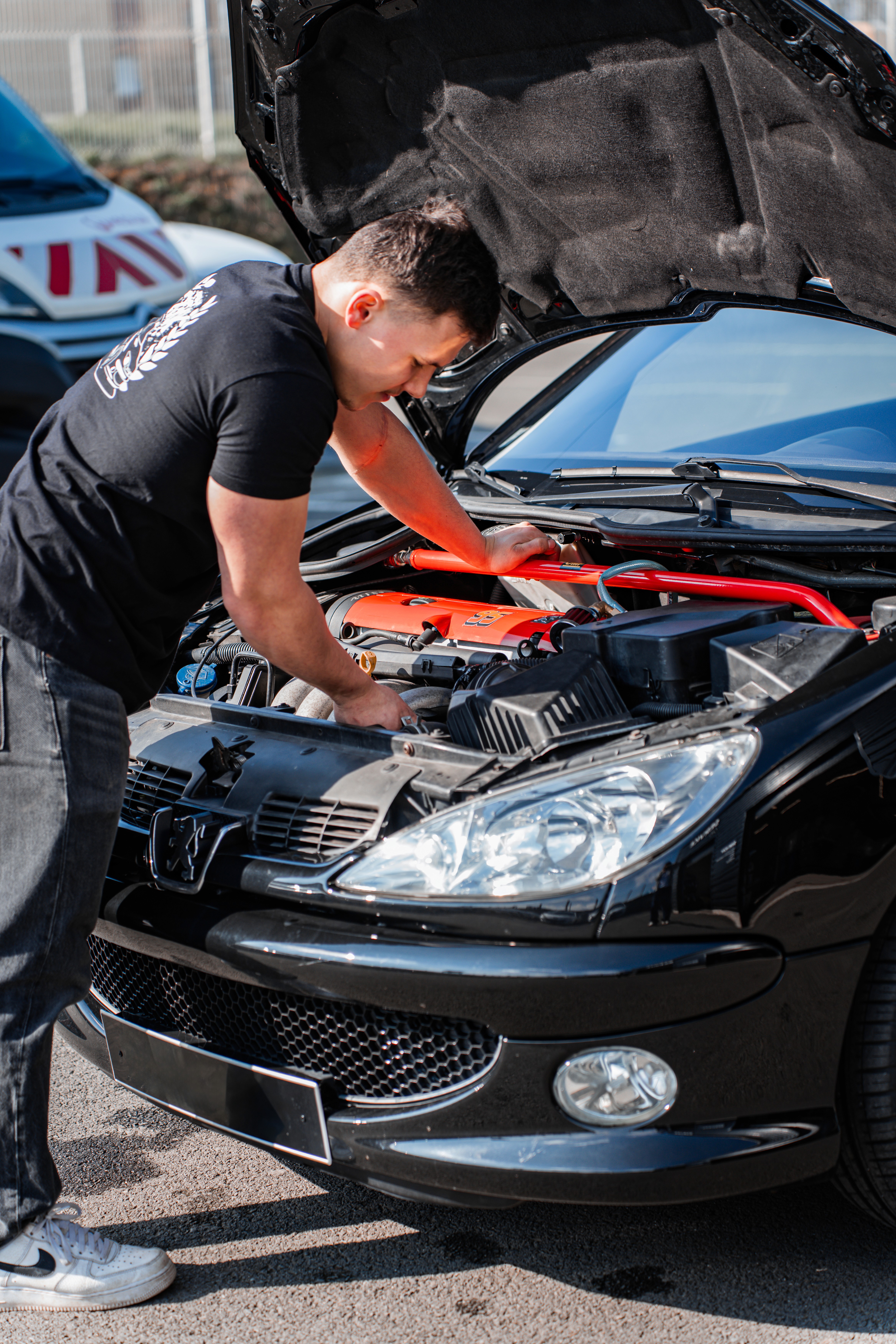 Pour ce shooting, j’ai accompagné un jeune mécano passionné qui a entièrement remis à neuf sa Peugeot 206. L’objectif était de mettre en valeur son travail, sa passion et le style unique de sa voiture, en capturant à la fois la mécanique soignée et l’esthétique de son projet personnel.